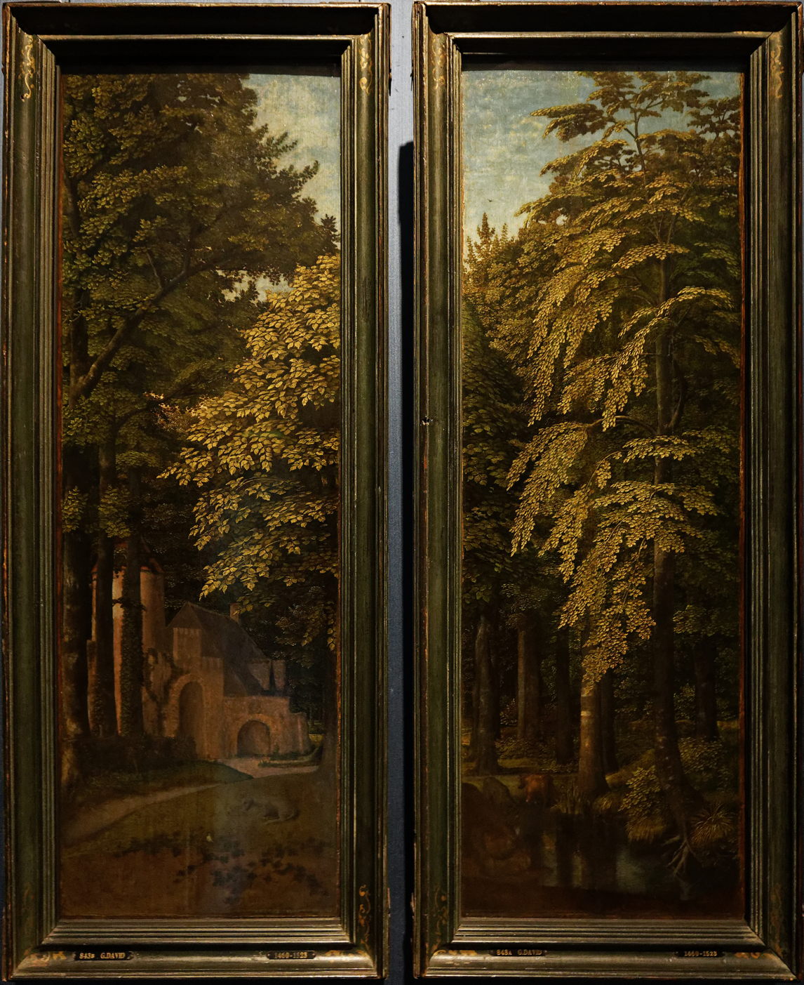 This remarkably realistic landscape painting of a Wooded Scene from 1510-15 forms the outer wings of a triptych of the Nativity. Its inner wings and central panel are now in the Met in New York.