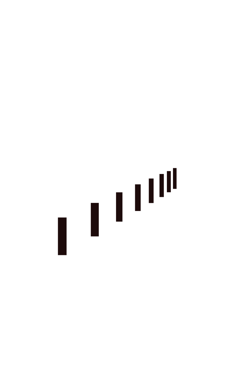 Once the heights of the bars are altered, a feeling of recession starts to appear. Note that their widths have not (yet) changed, so this isn’t a strong sensation.
