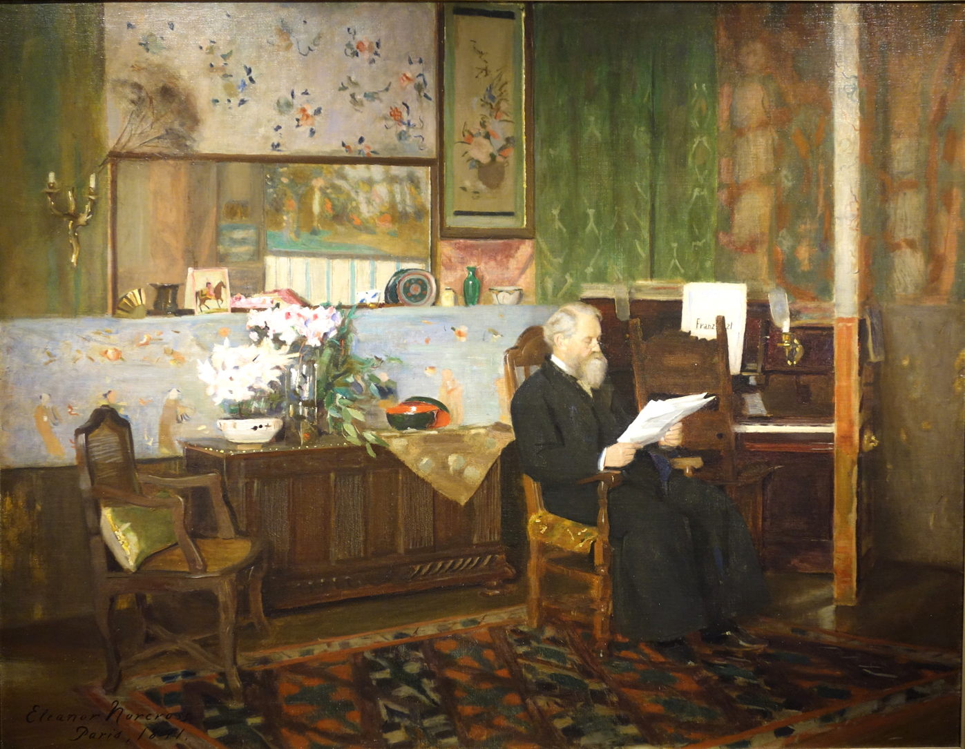 In 1883, on Chase’s recommendation, she crossed the Atlantic to Paris, to study under Alfred Stevens. She based herself there for the rest of her life, travelling in Europe and returning to Fitchburg. Among her close friends in France was Pierre Puvis de Chavannes. She exhibited regularly in Paris, and in 1893 in Chicago, at the World’s Columbian Exposition.