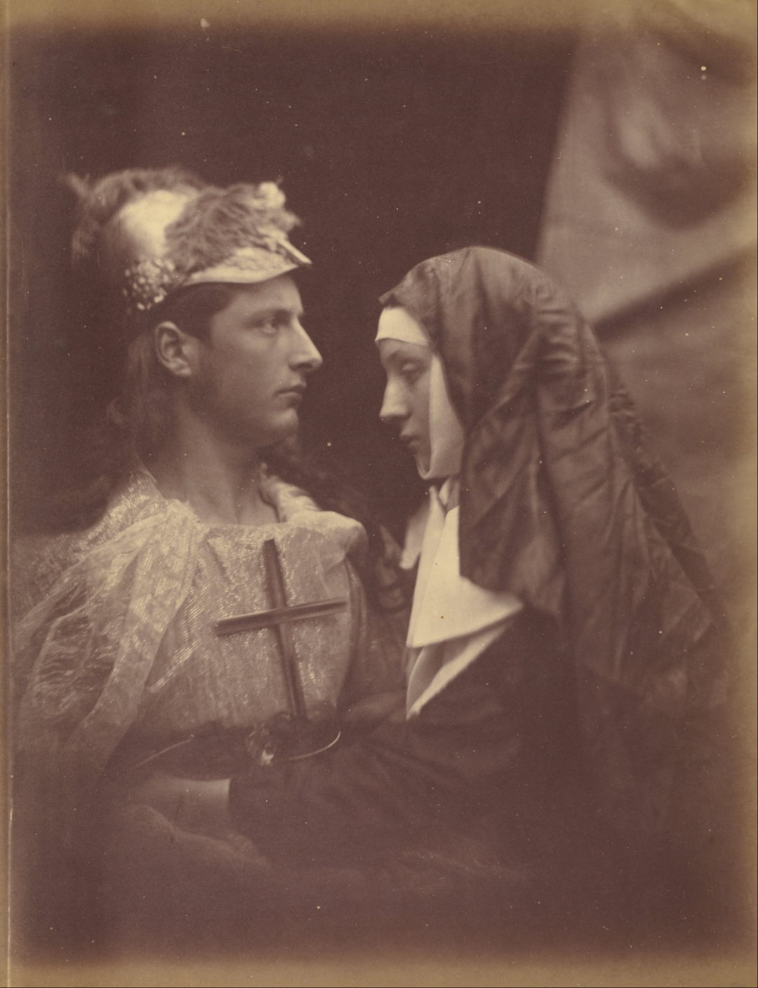 Other accounts of Galahad’s quest add other adventures. Julia Margaret Cameron’s pioneering photograph from 1874 shows Sir Galahad and The Pale Nun.