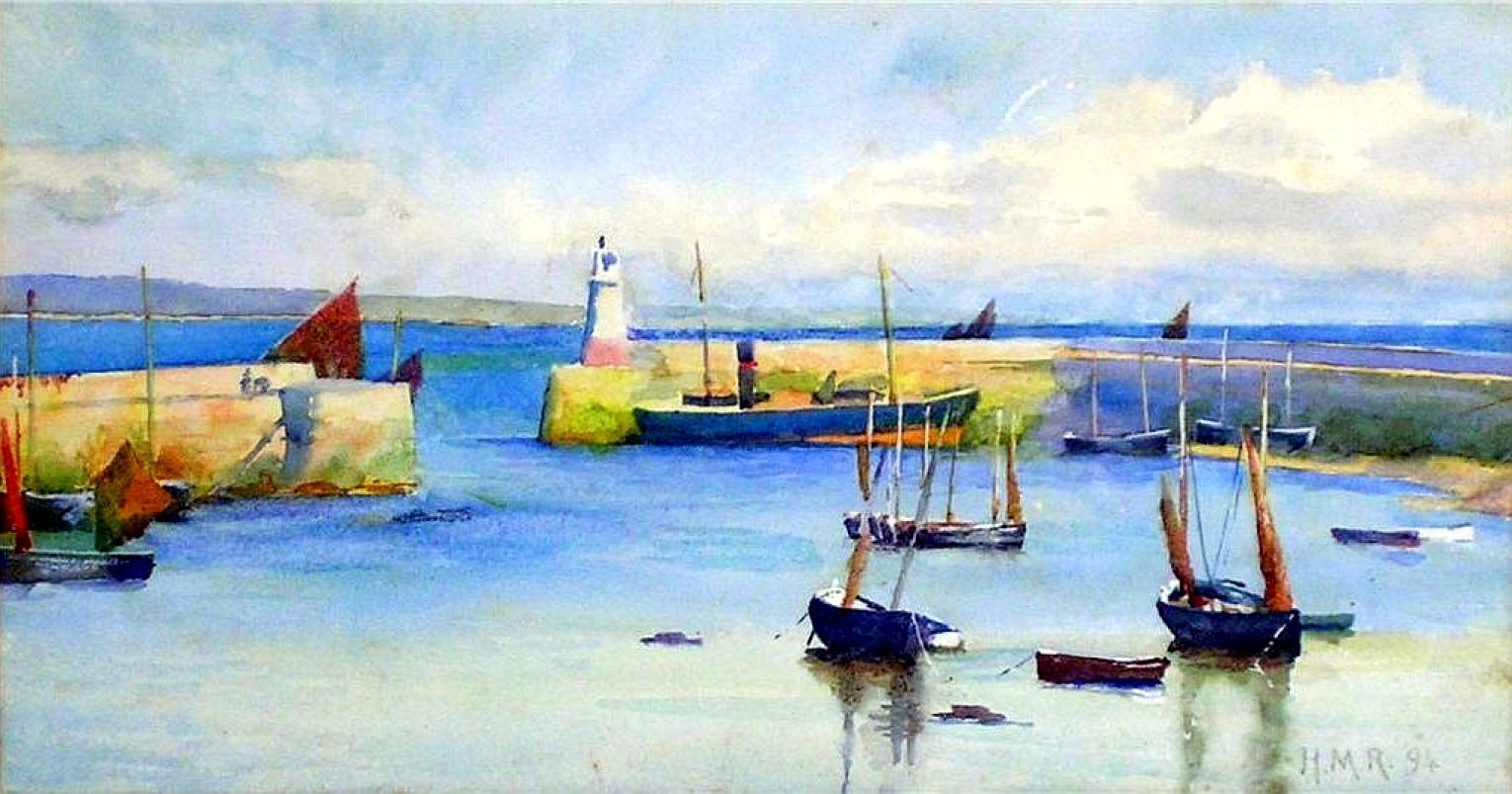 Henry Meynell Rheam was a less well-known member of the Newlyn School, and he too came to it after training in Europe. He was born in Birkenhead, then went to Germany and the Académie Julian in Paris. He painted this watercolour of Newlyn Harbour in 1894, and it’s high in chroma compared to many of the landscapes of this school.