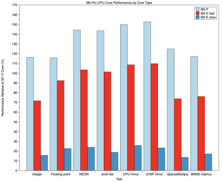 M3 chips widen the gap between Pro and Max variants. They also change relative performance between P and E cores to make M3 CPUs more versatile.