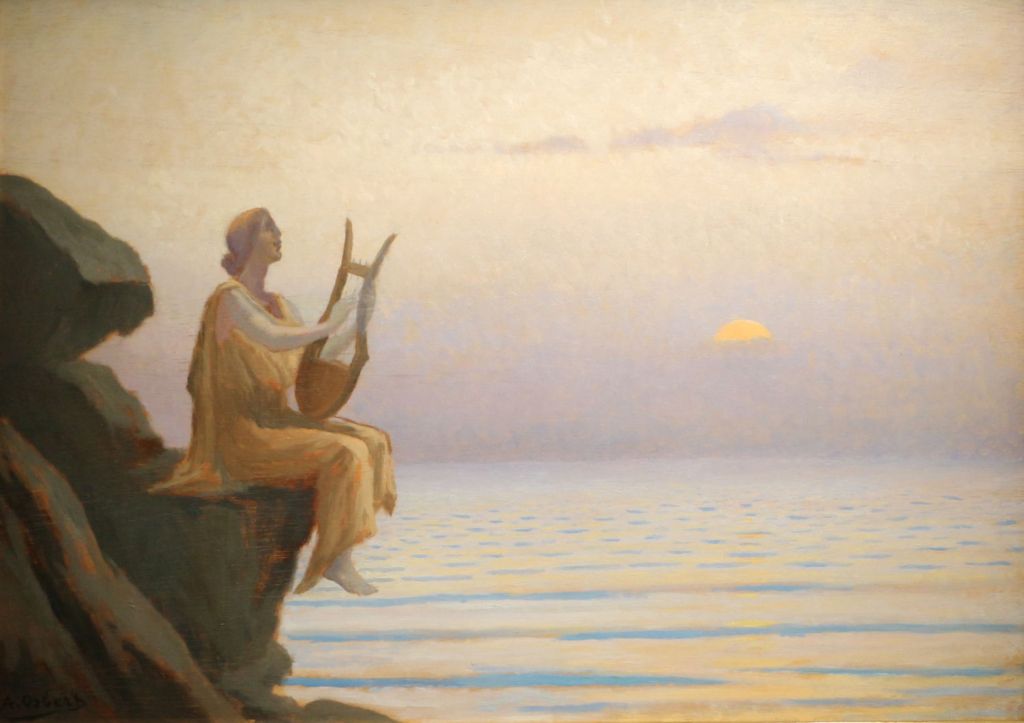 His late painting of Evening Harmony on the Sea from 1930 is suggestive of Sappho, although these rocks aren’t intended to represent the Leucadian Cliff from which she is reputed to have thrown herself.