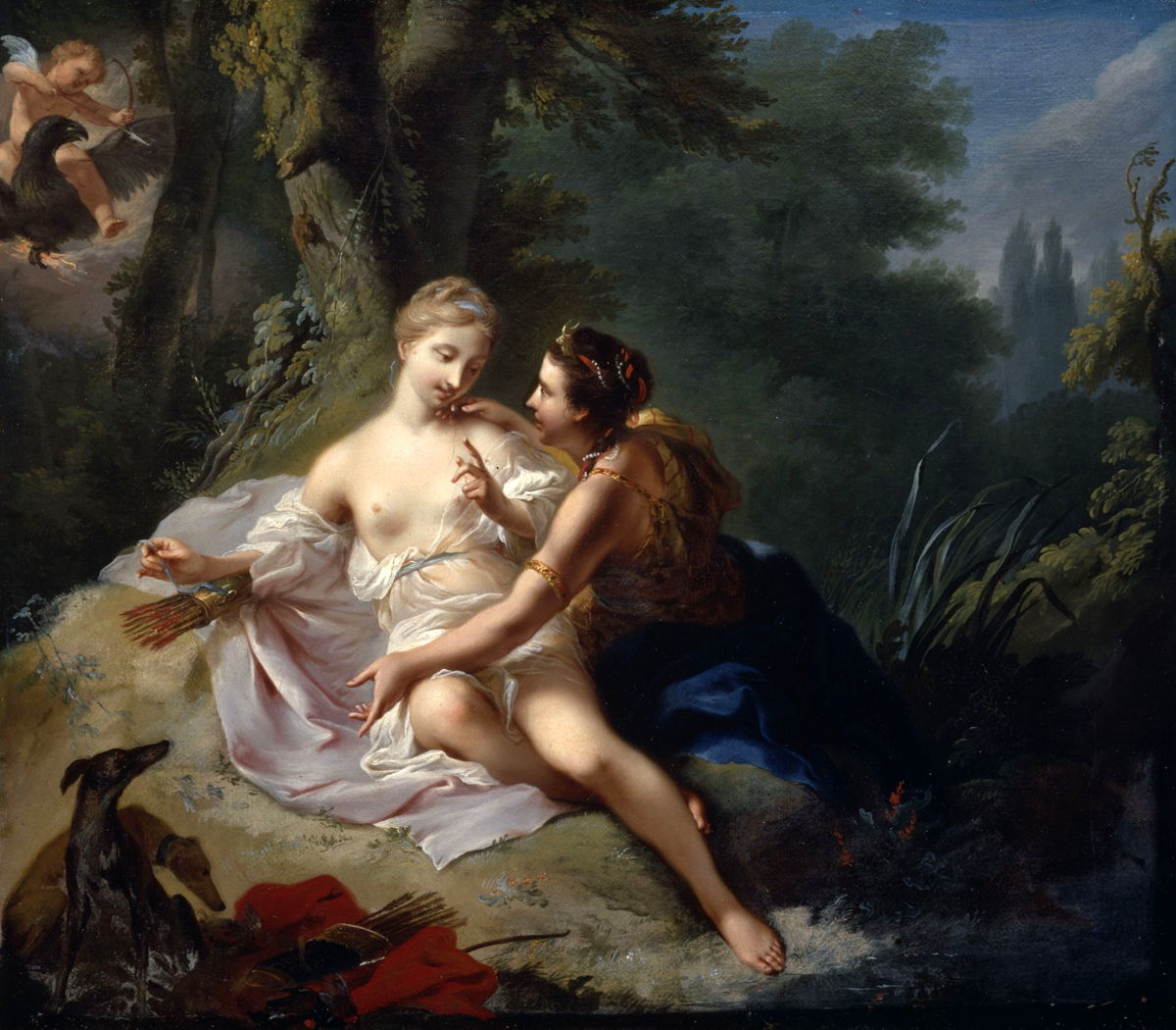 Among Johann Heinrich Tischbein’s fine mythological paintings is his Jupiter in the Guise of Diana Seducing Callisto (1756), featuring Cupid riding astride Jupiter’s eagle, at the extreme left.