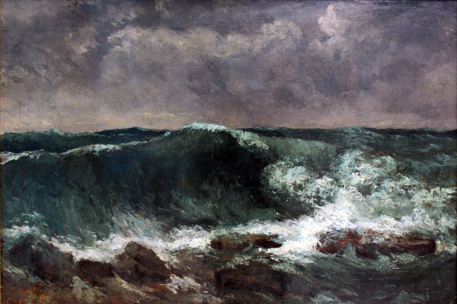 In the late 1860s, Gustave Courbet’s coastal paintings came to concentrate more on the waves breaking on the beach, as in his Autumn Sea from 1867.