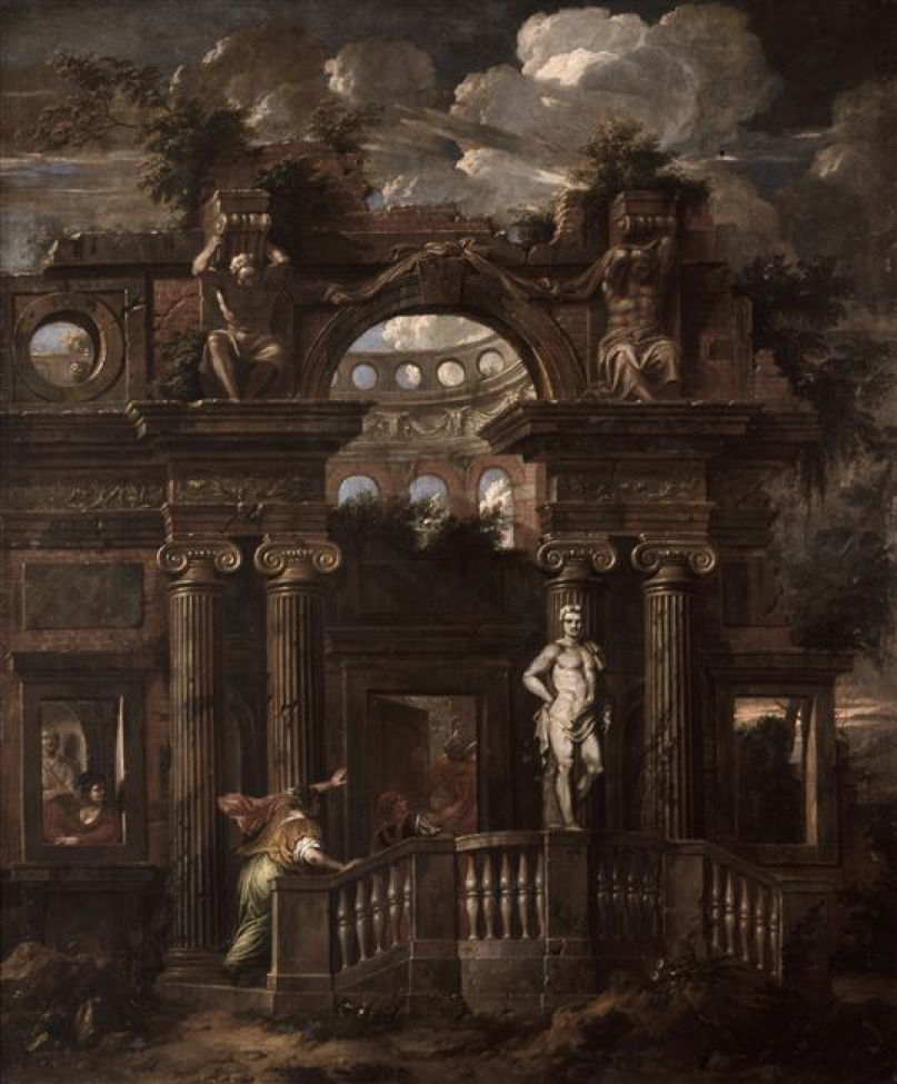 Jan Baptist Huysmans and Jan Erasmus Quellinus, in their Mercury Turns the Jealous Aglauros into Stone (c 1700), cram the action into the relatively small entrance of their inventive image of the Cecrops house. It’s hard to know who is doing what, or to whom, but Mercury appears to be standing inside the threshold, with Aglauros running towards him from outside. Herse sits and watches from a window at the left, and the statue of a man stands to remind us of her sister’s imminent fate.