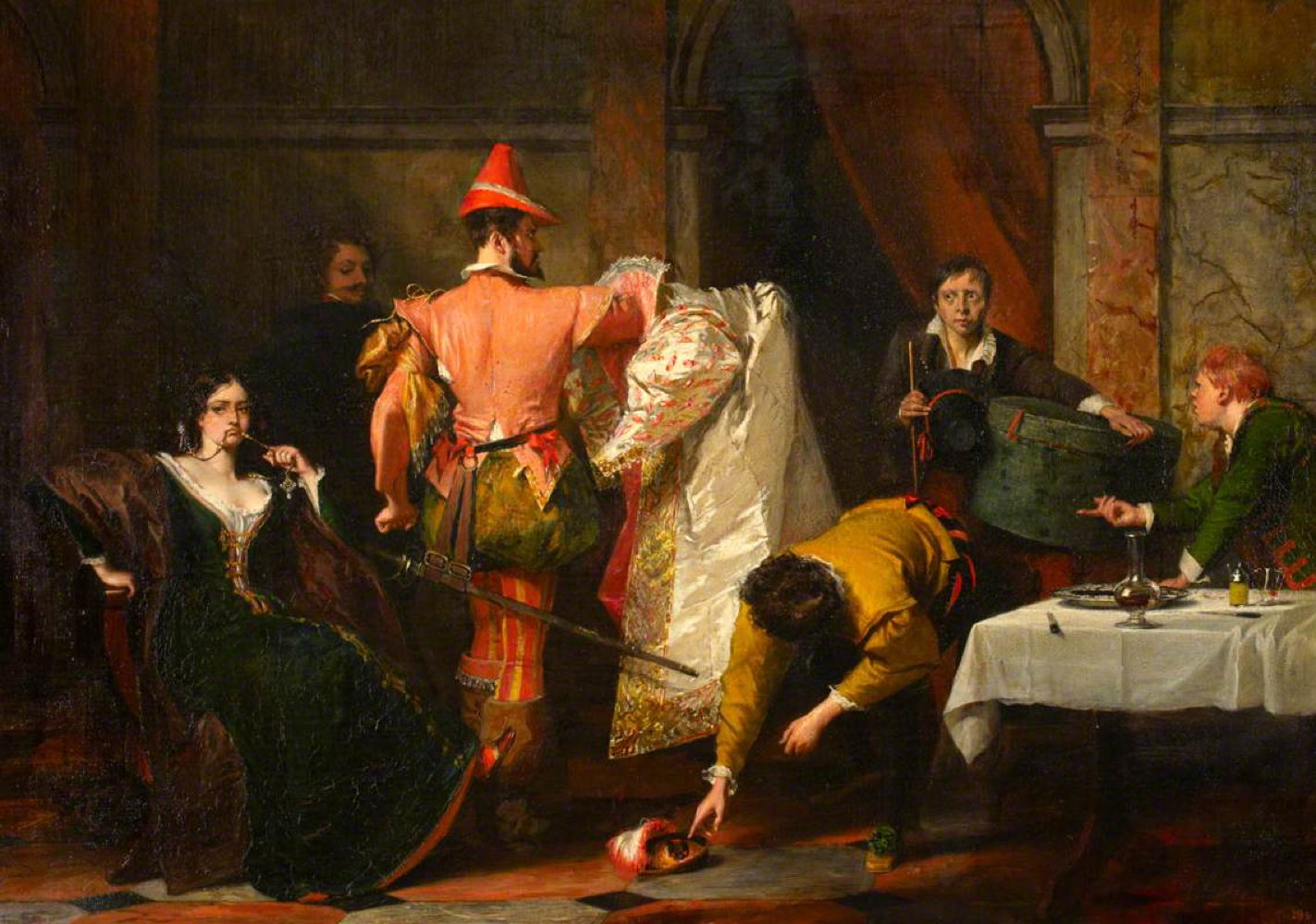 Hatboxes have a long history, as shown in Charles Robert Leslie’s scene of Catherine and Petruchio (1832) from William Shakespeare’s play The Taming of the Shrew. Catherine is seated at the left, as her new husband dismisses the haberdasher and tailor bringing her new clothes, including an enormous green hat box held by an anxious tradesman.