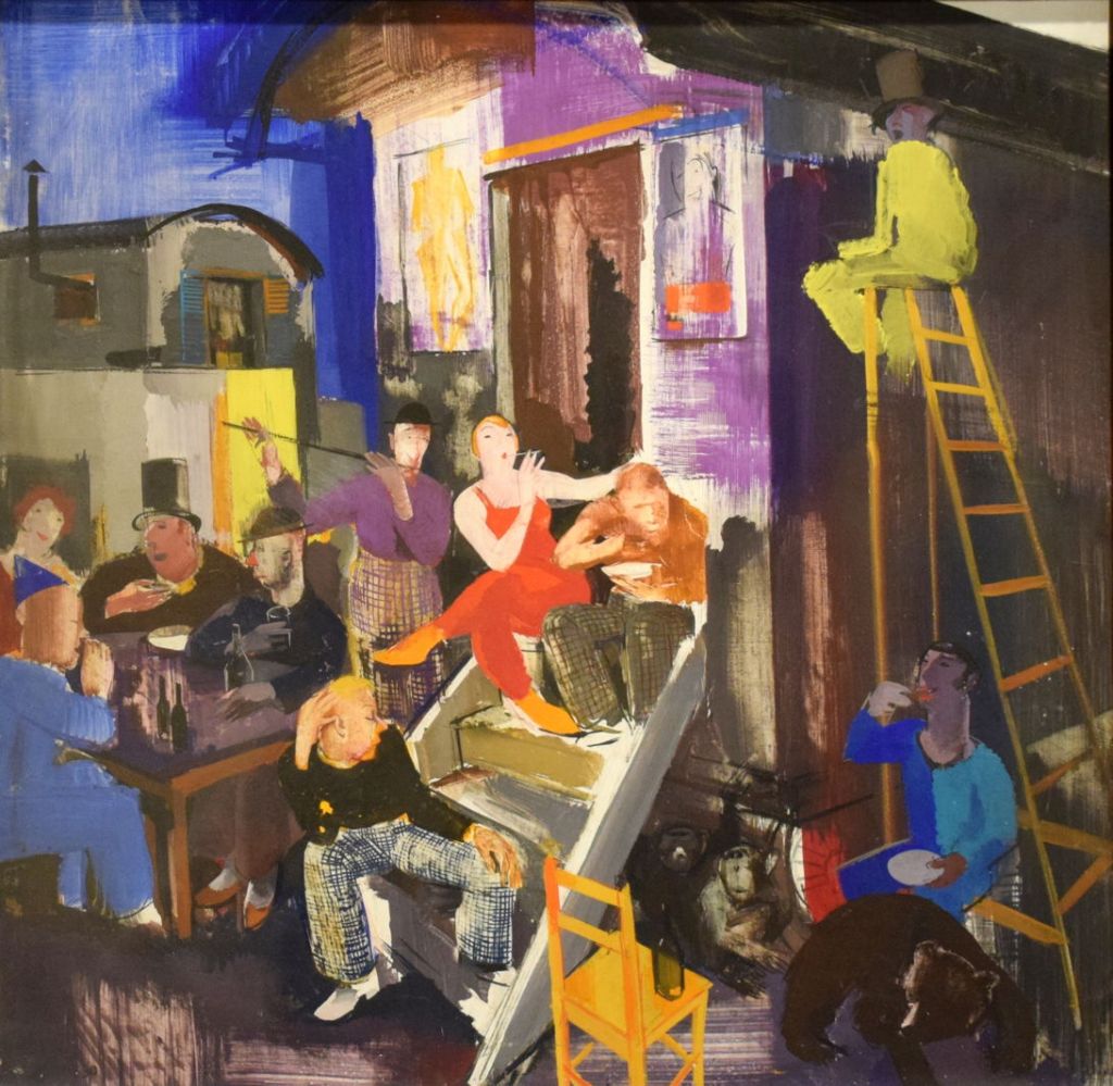 Vilmos Aba-Novák, the first major modern painter in Hungary, made a series of works looking at the lives of Circus Performers, from about 1930. Here they’re clustered around the caravans in which they lived.