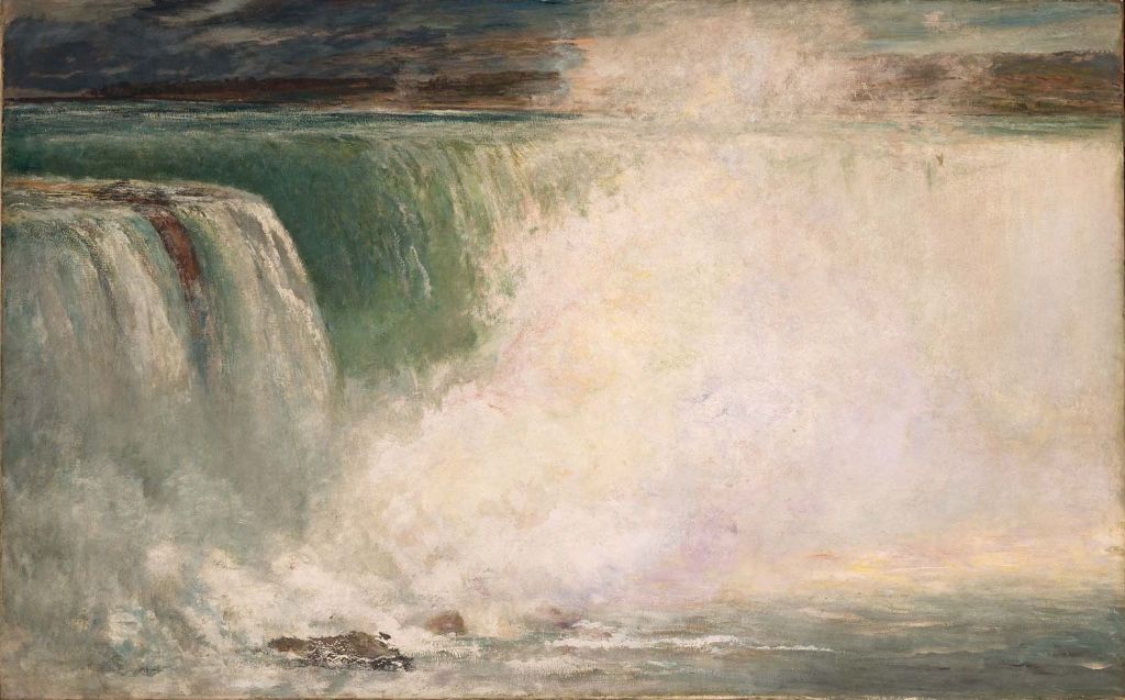 His last and greatest landscapes are views of the Niagara Falls (1878): this is probably the most famous of those, and shows the Canadian Horseshoe falls from the Canadian side, a view almost identical to that painted by Frederic Edwin Church in 1857.