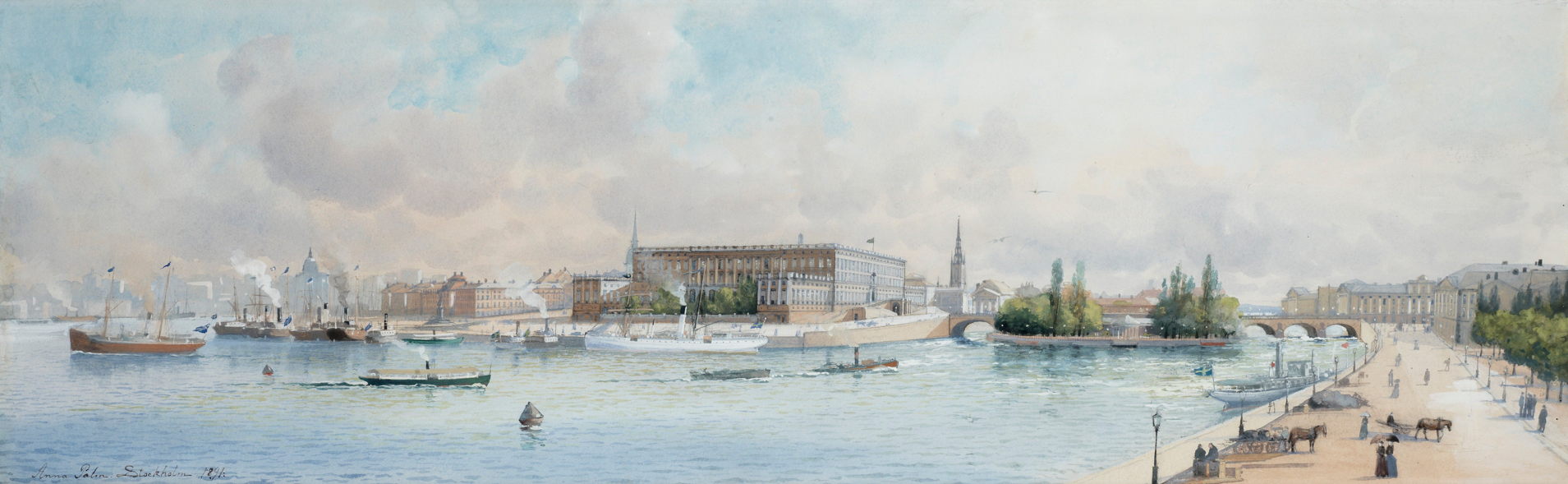 At the end of 1895 she travelled to Paris, where she painted watercolour views of the city. She also appears to have continued painting Stockholm using photographs, including some showing the 1897 Art and Industrial Exposition there.