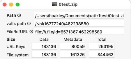 Classic Mac OS could give the size of data and resource forks. High Sierra ignored extended attributes, and Sonoma tries to add them, but only includes some.
