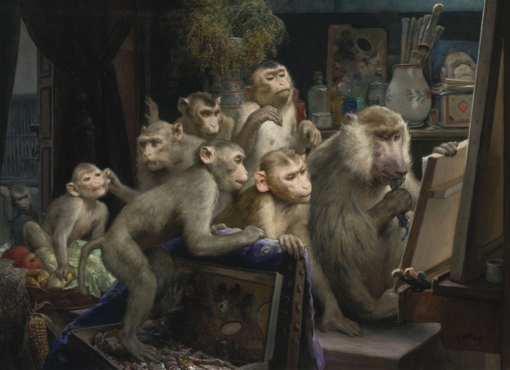 For one or two artists, singeries were not enough. Gabriel von Max probably painted more works of monkeys or apes than any other artist, from models he kept at his residence by Starnberger Lake, in the Bavarian countryside, where he painted each summer.