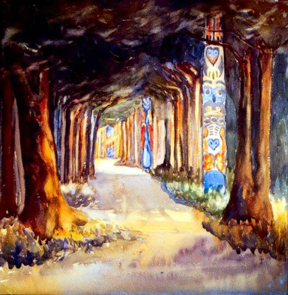 Emily Carr (1871–1945), Totem Walk at Sitka (1907), watercolour on paper, dimensions not known, Art Gallery of Greater Victoria, Victoria, BC. The Athenaeum.