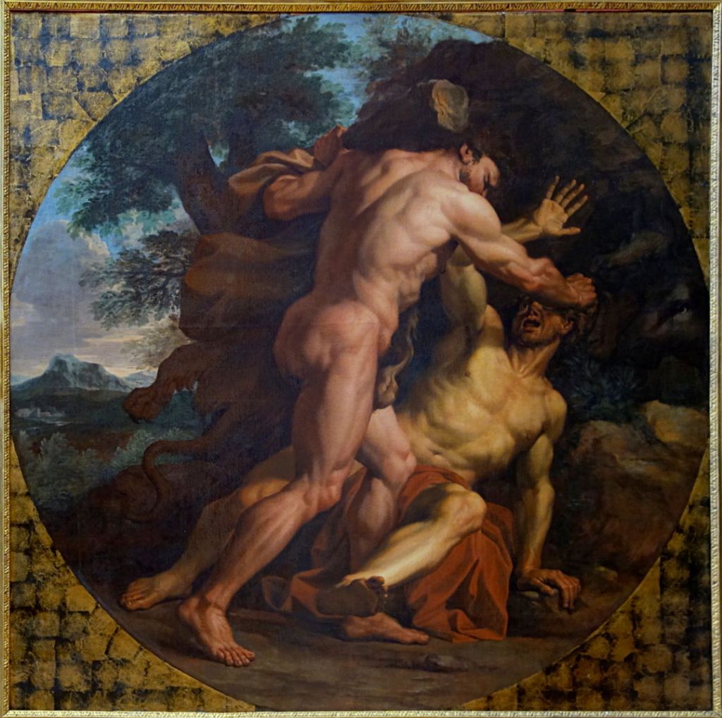 Noël Coypel, the father of the better-known history painter Antoine Coypel, painted Hercules Fighting Achelous in about 1667-69. This too opts to show the pair during the first phase of their fight. In addition to wearing his lion-skin, Hercules wields his fearsome club, although Ovid doesn’t refer to its use on this occasion.