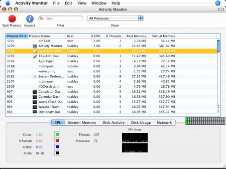 Originally Process Viewer and CPU Monitor, in 2003 they merged and became Activity Monitor, similar to the current version. Also borrowed for Xcode Instruments.