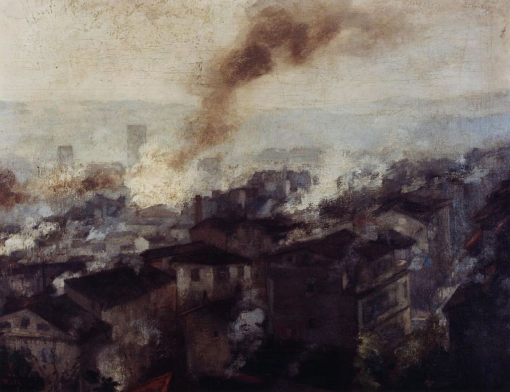 Frits Thaulow’s The Smoke from 1898 shows a suburb overwhelmed by smoke, with houses crammed up against factory walls. Few cities enforced any separation between industrial areas and housing, and there were no restrictions on the discharge of smoke even in densely populated zones.