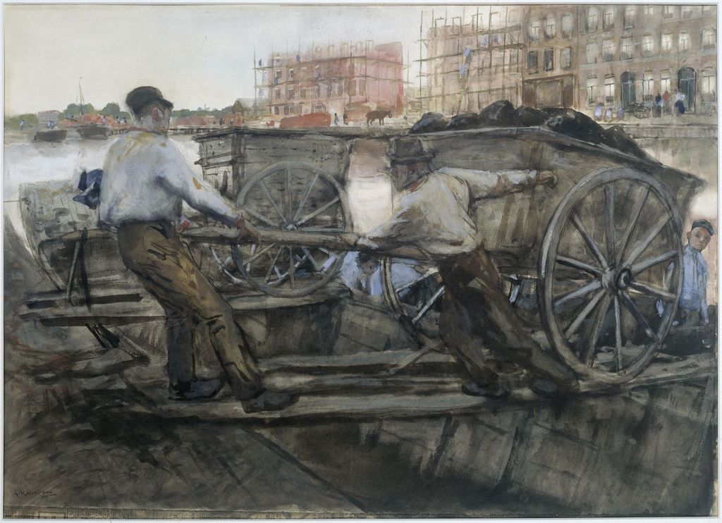 Breitner captured this in his undated watercolour sketch of Ground Porters with Carts. These were the jobs that immigrants from the country were often employed in, as physically demanding and dirty as their previous work on the land.