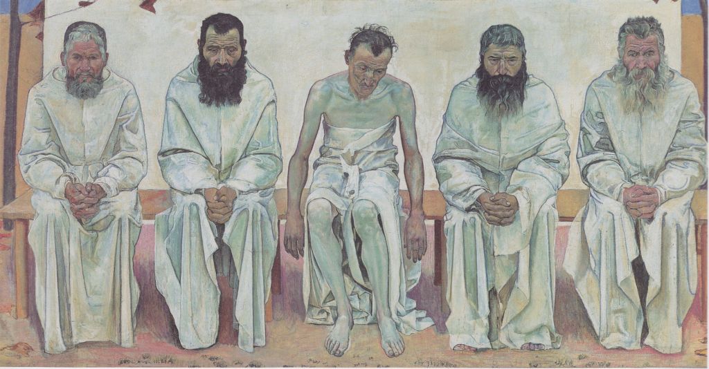 The Disappointed Souls (1892), another in this series, also shows five older men, this time dressed in black robes and sat on a bench in barren fields.