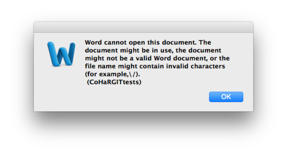 Microsoft Word is seen here in OS X 10.10 Yosemite in 2015, when it wasn’t being helpful in revealing why a document couldn’t be opened.