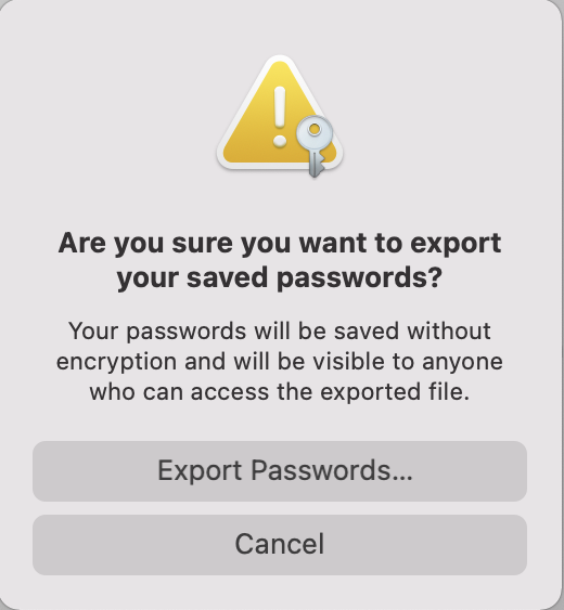 macOS 11 Big Sur in 2020 brought a substantial redesign of the interface, including these bizarre vertical alerts that are clearly intended for display in iOS portrait mode, rather than the almost universal landscape mode of Mac displays. Shown here a year later in Monterey, this alert uses a caution badged icon, with centre-aligned text.