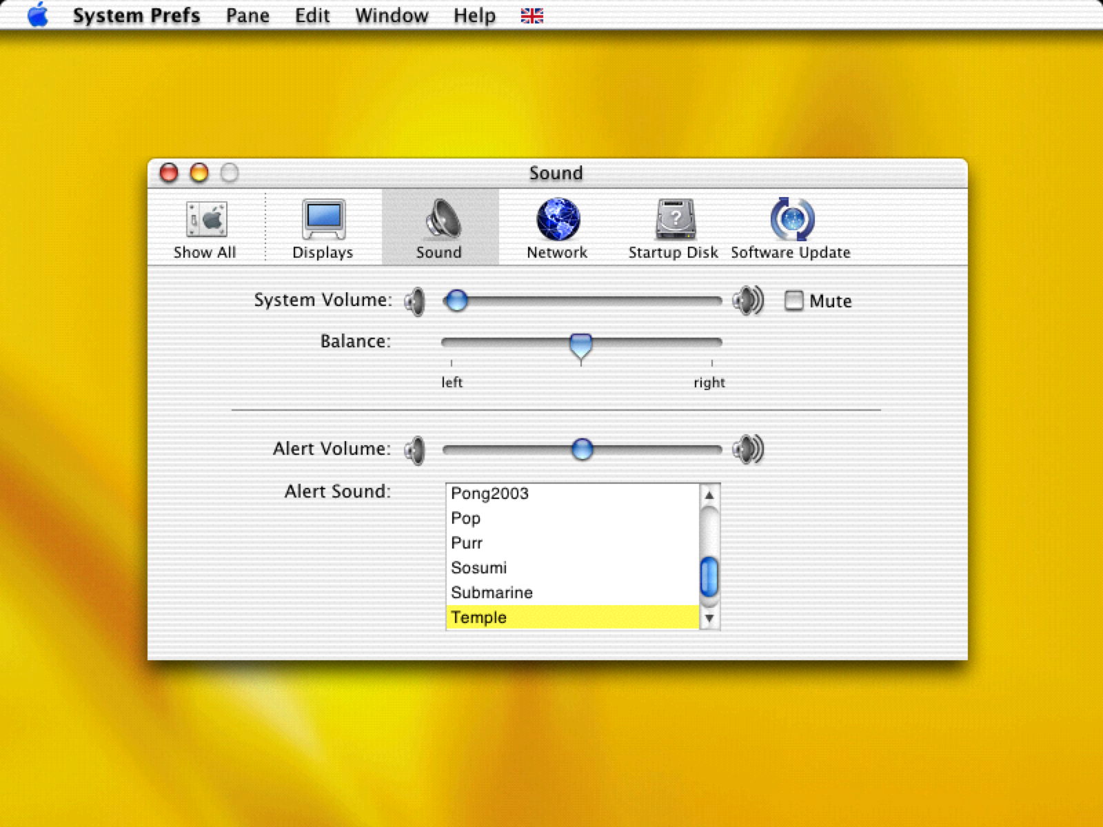 System alert sounds changed, as shown here in Mac OS X in 2001.