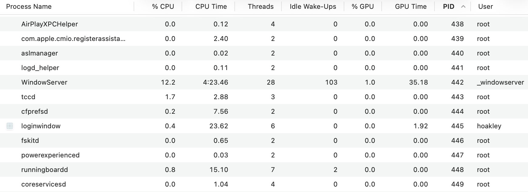 Posted in Macs, Technology and tagged Activity Monitor, log in, login, macOS, PID, root, users, WindowServer. Bookmark the permalink.