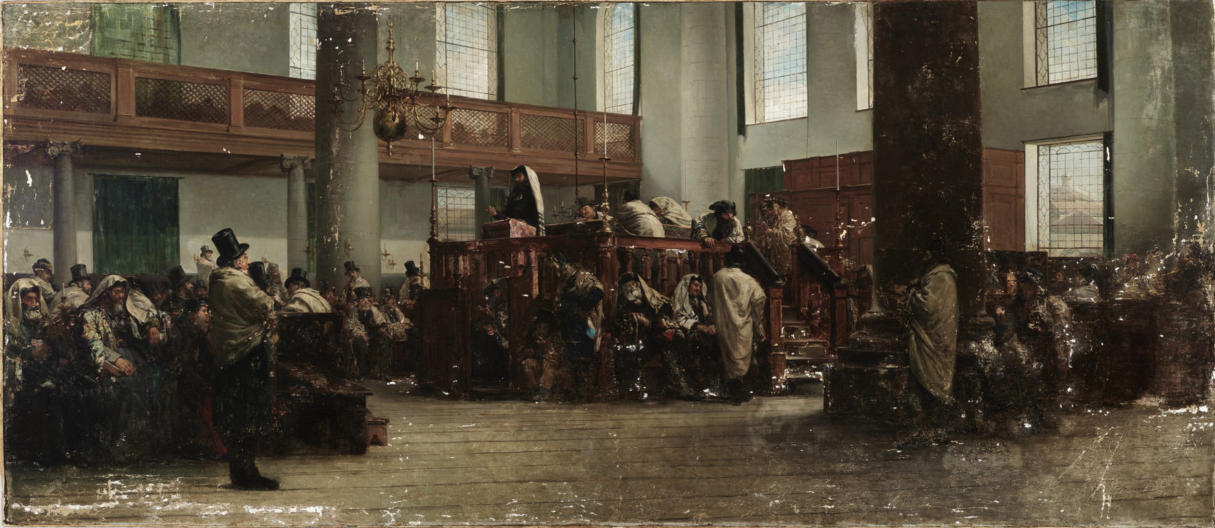 Jacob-Emile-Edouard Brandon is one of the forgotten artists who exhibited at the First Impressionist Exhibition in 1874. One of his few surviving paintings is this Portuguese Synagogue at Amsterdam 22 July 1866 from 1867, which was awarded a medal at the Salon of that year. This was probably Europe’s most famous and picturesque synagogue at the time. The sermon was being delivered by the distinguished Talmudist David de Jahacob Lopez Cardozo (1808-1890), who was appointed ab bet din there in 1839.