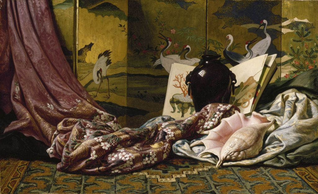 The American Elihu Vedder also developed a fascination for east Asian objets d’art, which he assembled in this Japanese Still Life in 1879. This unusual collection may have been assisted by the fact that his brother was a US Navy doctor who was stationed in Japan as it was being re-opened.