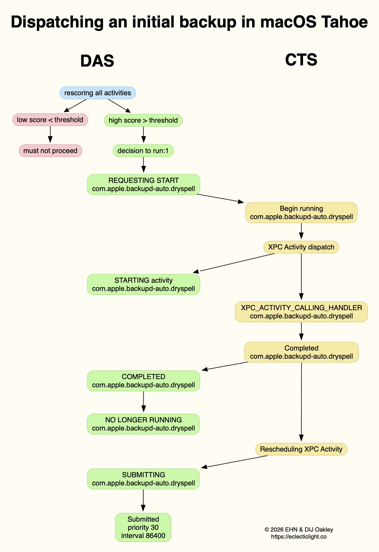 Dispatch of com.apple.backupd-auto.dryspell thus differs from the diagram below, showing dispatch of an ordinary automatic backup after the initial one, in macOS Sequoia.