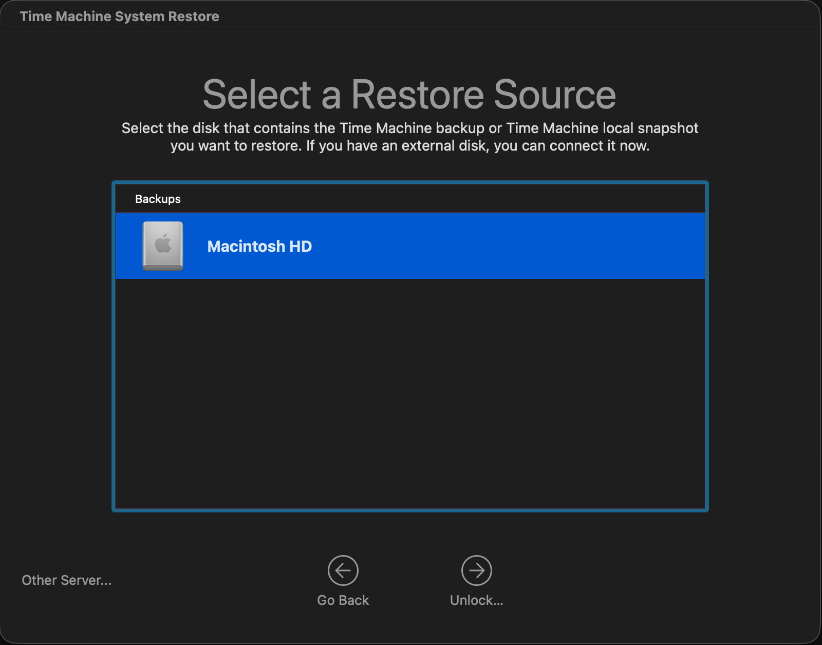 If your backup is on external storage, this is the time to connect it and locate the backup you want to restore from.