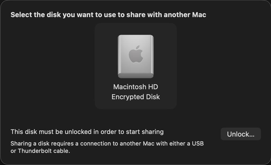 • Apple silicon Mac: Recovery mode, Utilities menu, Share Disk.