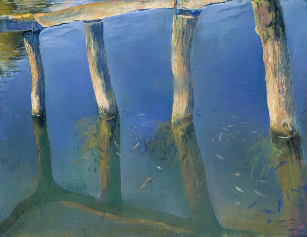 Sichulski’s Fish (1908) is a startlingly unusual pastel painting, a virtuoso combination of reflections from and views through this water surface. It’s an essay in practical optics.