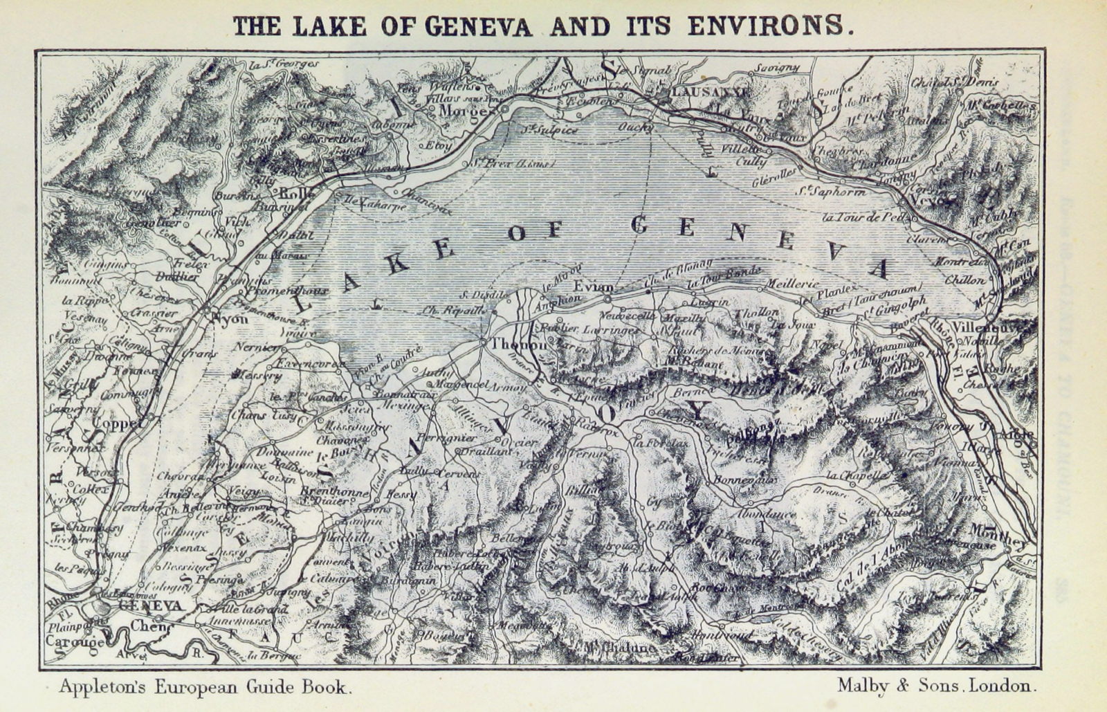 Daniel Appleton et al., Map of Lake Geneva (1877), p 521 in Appleton’s European Guide Book illustrated, 10th edition, D. Appleton & Co, New York. The British Library, London. Wikimedia Commons.