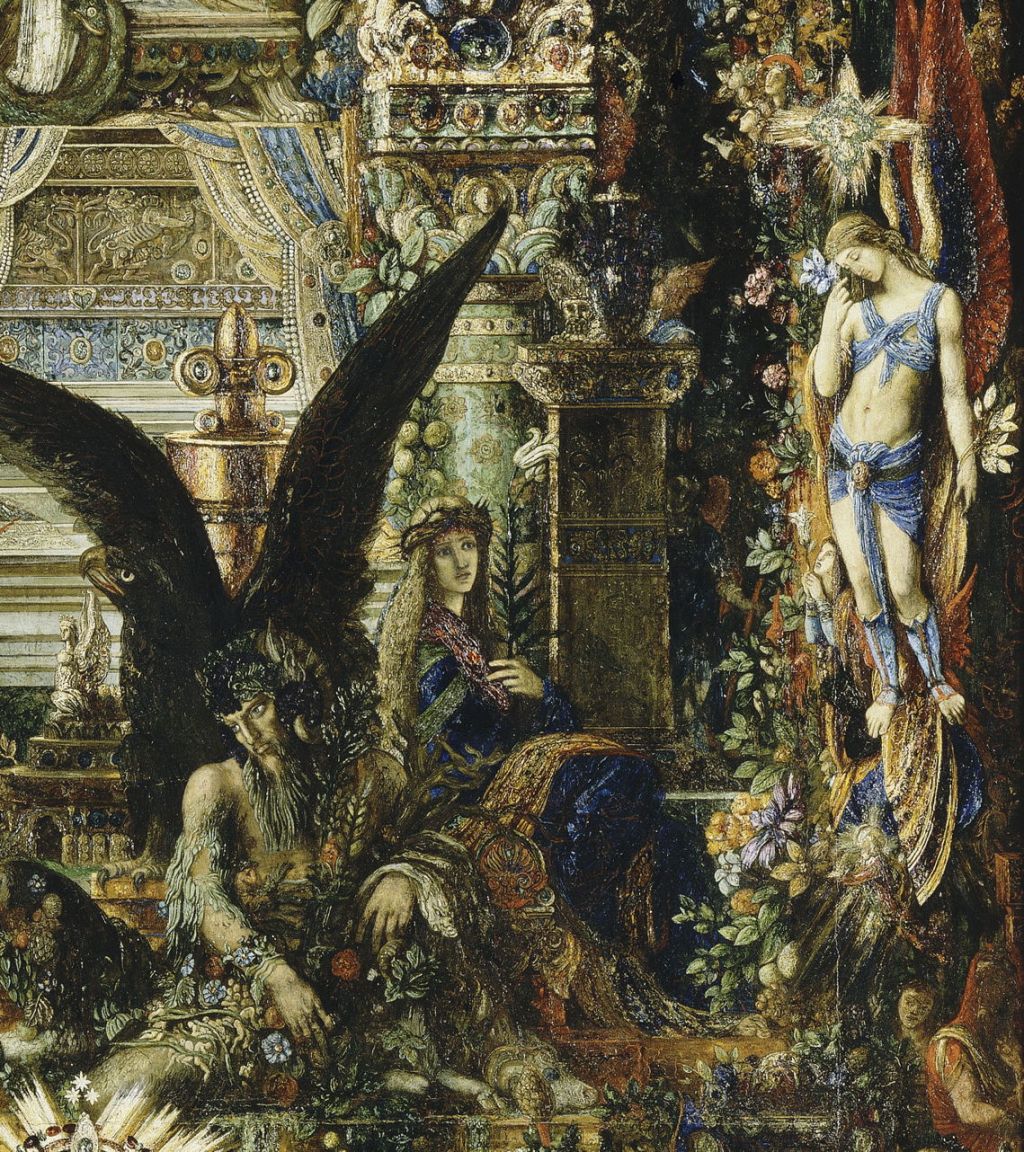 Moreau has placed a dazzling array of other images from many different cultures and beliefs at the left side of Jupiter’s throne, some of which can be made out in this detail.