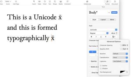 How can you create a new accented or other character which doesn’t appear in Unicode? It depends on whether you want it in text, or PDF.
