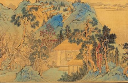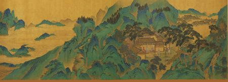 A truly beautiful hand scroll in blue-green style, which tells the story of an ancient ode using exquisite images.