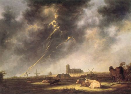 His landscapes gained a rich Claudean light, as he painted ferries on the nearby River Maas, and cattle enjoying the cool water.