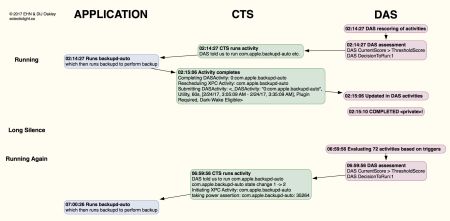 When part of the mechanism which schedules and dispatches Time Machine backups fails, those backups become irregular. Here it is shown in a clear diagram.