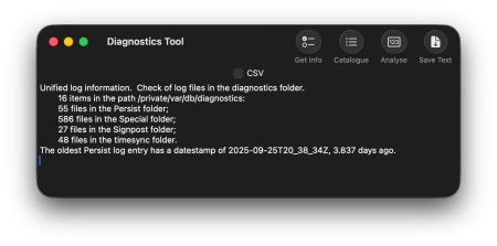 Build 74 adds a Diagnostics Tool to analyse and catalogue diagnostics folders that are or have been a live log store, including those saved in backups.