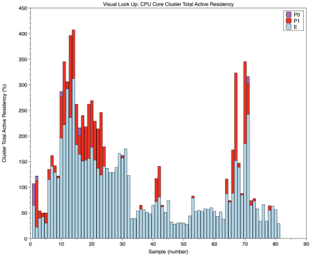 Which type of CPU cores are most active during Visual Look Up? How their frequencies and active residencies change? How demanding is it?