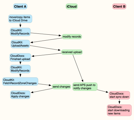 Looking inside iCloud when copying a file across to cloud storage. How CloudDocs, CloudKit, MMCS, and other subsystems work together.
