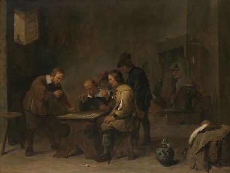 Guards throwing dice in the Crucifixion, gambling in Bosch’s vision of Hell, in a dingy tavern, losing an entire estate, and being played by young street urchins.