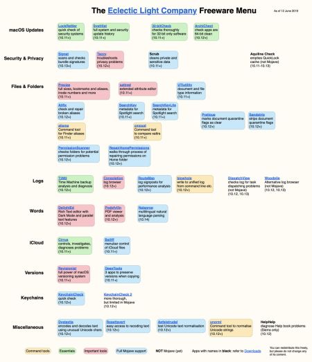 Forty supported apps and 6 command tools, all free, explained and linked in this new menu. And info on macOS 12 compatibility of key apps.