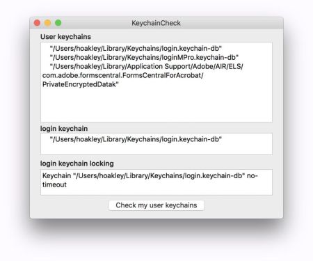 This may help you work out what is going wrong with local keychains in Sierra. Another free tool to spare you from Terminal.