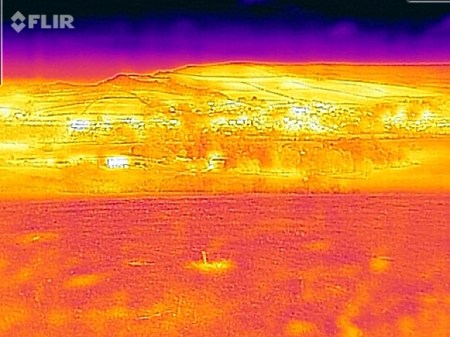 A thermal landscape complete with downs, a village, and a stately home.