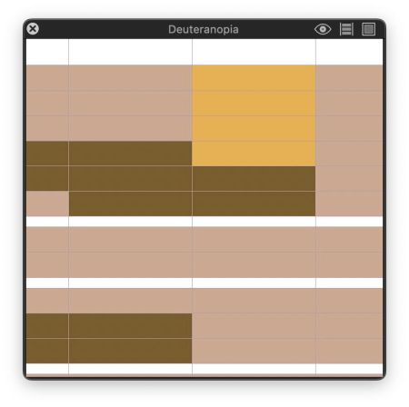 In the original JPEG image, the yellow and red are clearly distinguishable. By the time they’ve been rendered, they are hard to tell apart. Unless you’re colour-blind.